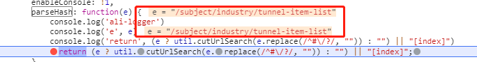 框架只会解析 hash 部分,即#号后面的部分,但我们的项目是使用 vue 的 history 模式开发的,所以无法解析。但这无法解释为什么后面的页面又能够正常获取 page 字段的原因。我们通过断点调试源码进一步进行分析,发现 parseHash 的逻辑实际上是这样的: